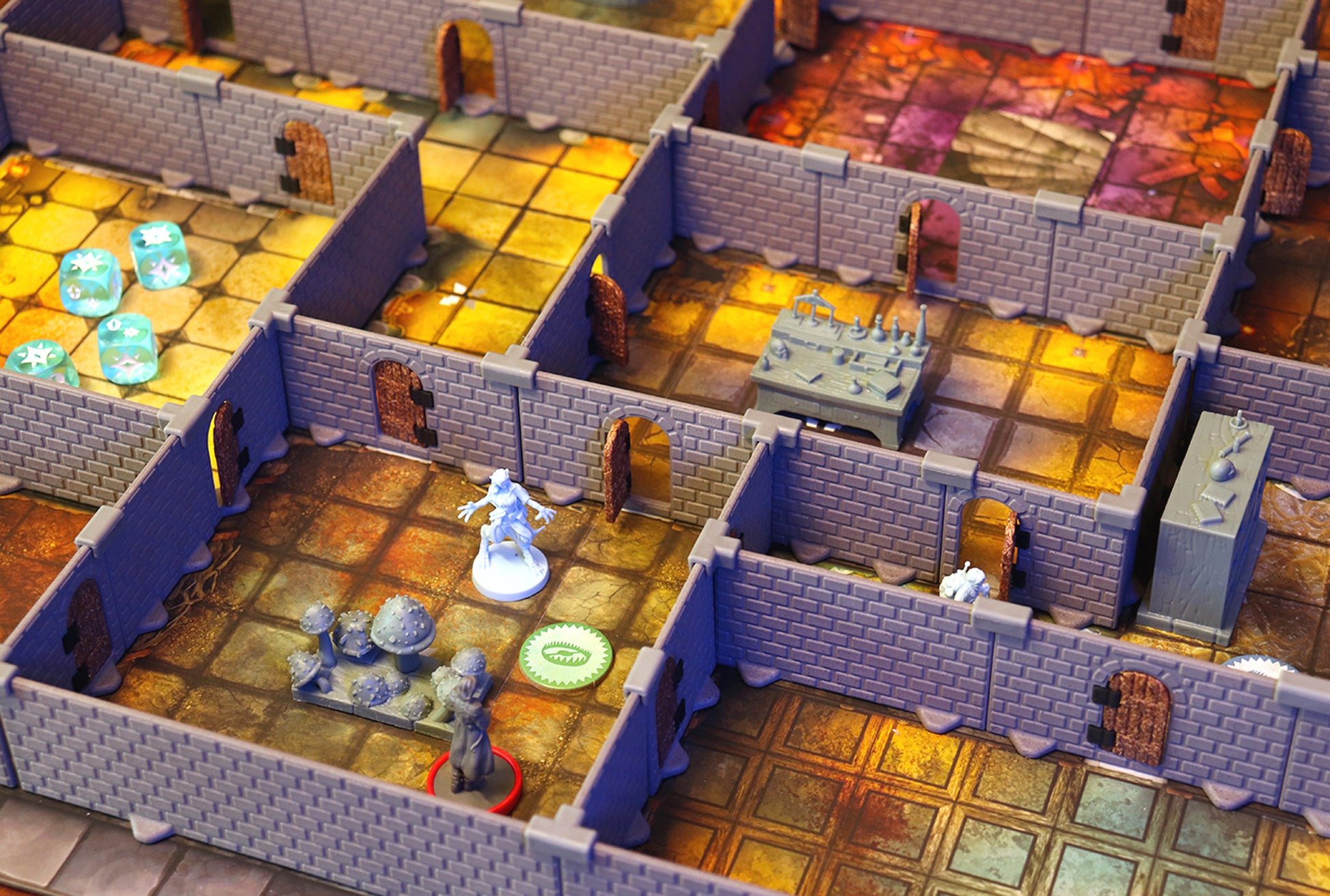 A set of clips, walls, doors, and stairs to help you add immersion and depth to many of your favorite board games such as Altar Quest!
