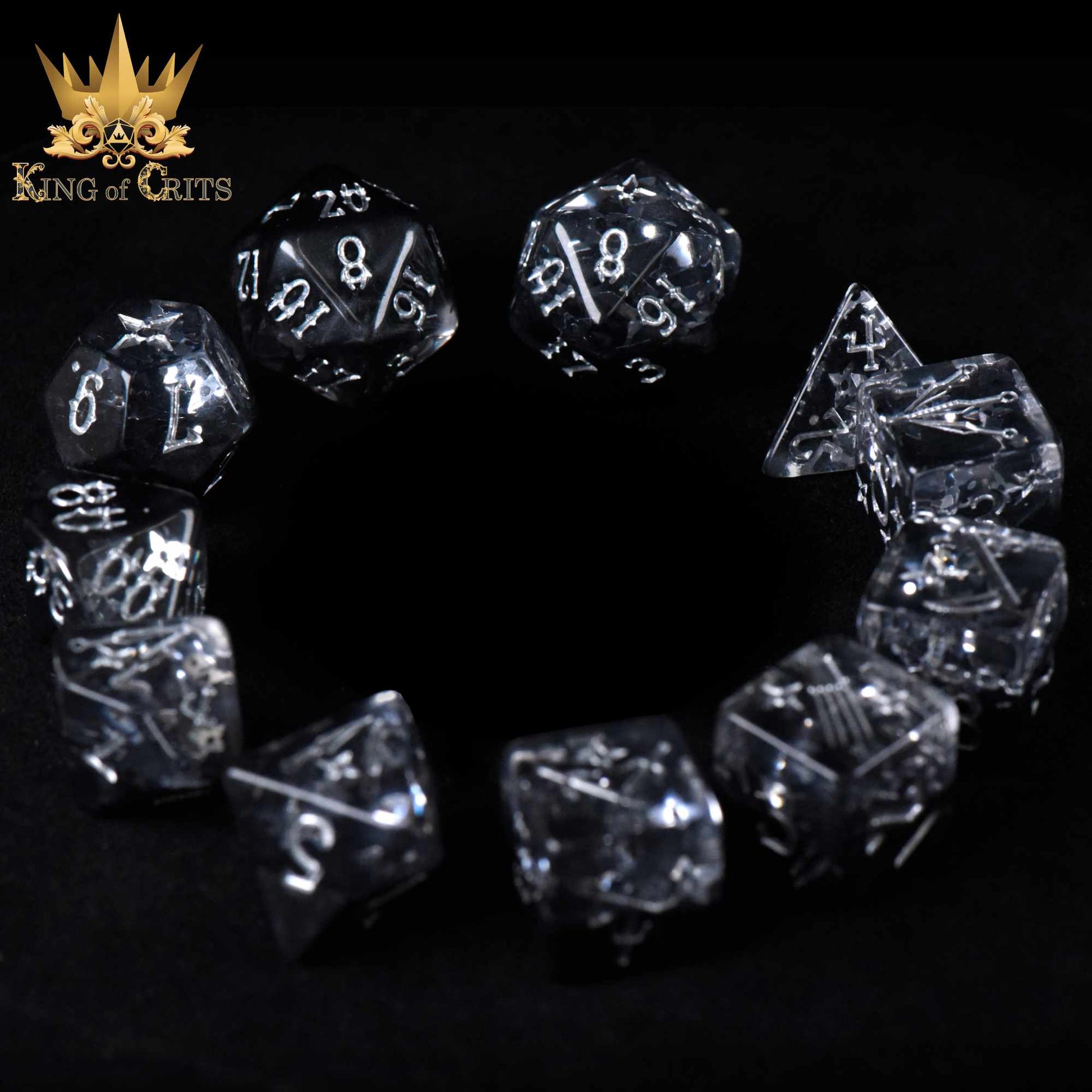 Master the art of stealth with our Ninja-themed dice set, built for those who strike first and ask questions never. Each roll is a step deeper into the art of deception, as you outsmart and outmaneuver your foes. Roll silently, move swiftly, and let the night be your ally as you move from the shadows of alleyways to the rooftops of the city.