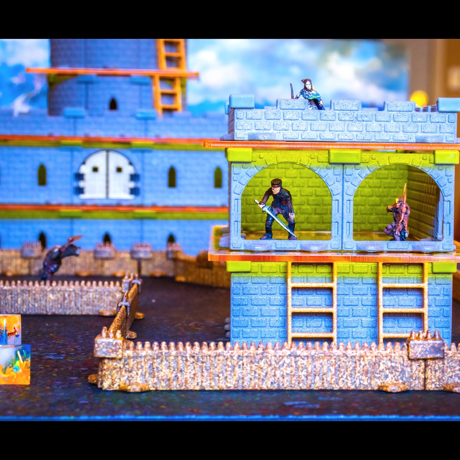 - 168 pieces of straight and curved walls/ramparts/palisades, doorways, doors, stairs and ladders – additionally, contains 10 acrylic platforms to build vertically and over 270 clips for versatile outpost building.