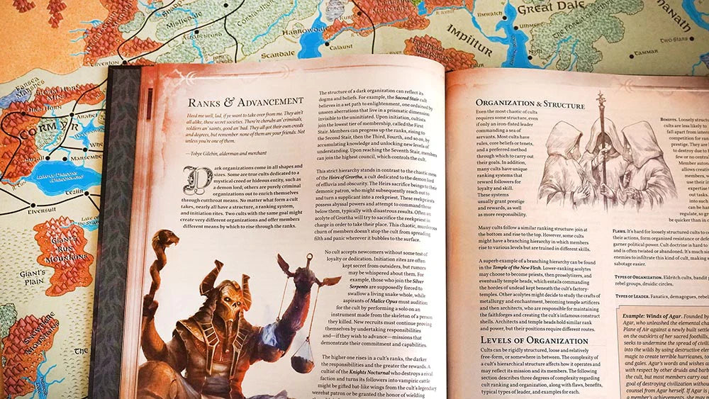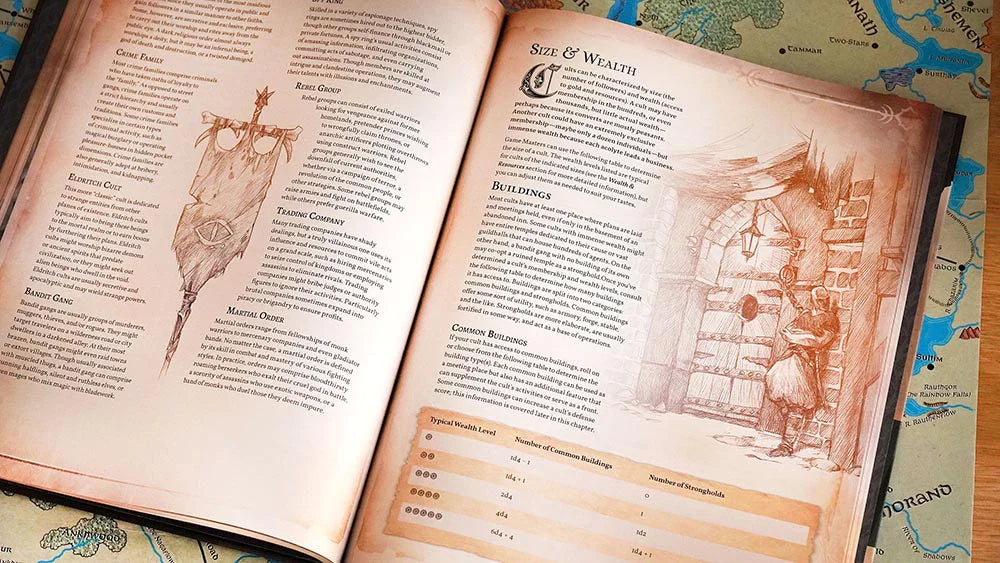 This brand-new book brings you exciting, intriguing, and complex evil factions, as well the tools to create your own. This includes villainous leaders and their cronies, rumors, new gameplay ideas, services, information on working for and against cults, gaining ranks and followers, and much, much more. This system-neutral book is not just about religious cults, but instead delights the imagination with a wide range of sinister organizations and factions to add to your game.